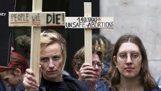 Dozens of women’s rights activists protested outside the U.S. embassy in Brussels on Thursday, decrying potential Trump administration plans to