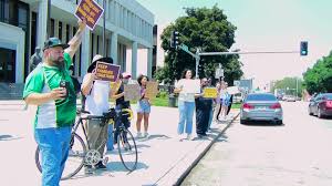 Dozens of protesters gathered outside the City/County Building, holding signs conveying their message: “Immigrants are welcome here.”
